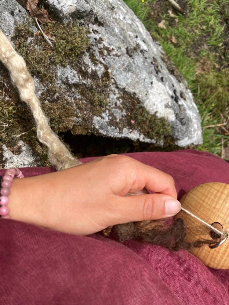 ‘Spending time with Rosemary during a 1 to 1 workshop was such a gift. It felt to me that the way that she teaches spinning and weaving are just tools to unravel deeper mysteries about life and living in deep connection with the surrounding nature. Never expected that, but forever so greatfull.’